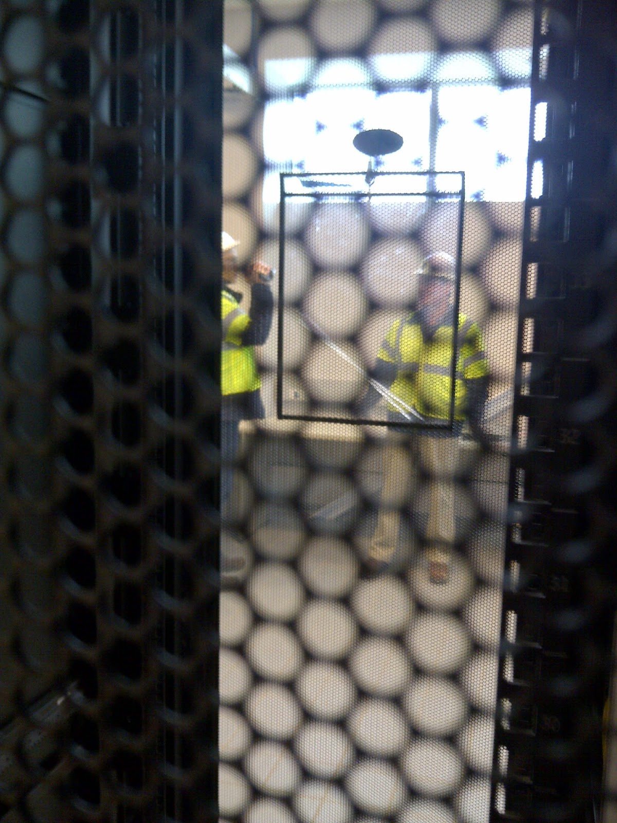 | Typical safety signage on much of the equipment being installed throughout the building. |